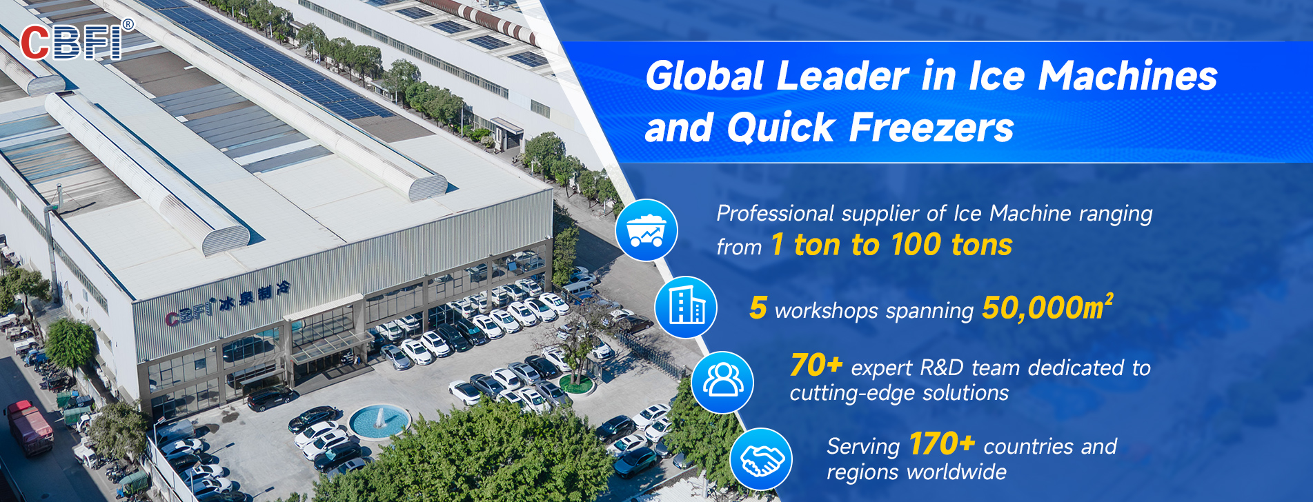 Guangzhou Icesource Co., Ltd. (торговая марка CBFI), пионер в области крупномасштабного производства холодильного оборудования и оборудования для производства льда, крупный завод по производству льда и поставщик инженерных решений для хранения льда, является инновационным и предприимчивым высокотехнологичным предприятием, объединяющим исследования, проектирование и производство , продажи и послепродажное обслуживание крупногабаритного оборудования для производства льда, крупногабаритного промышленного оборудования для производства льда, коммерческий льдогенератор, комплексная система производства льда и малый и большой холодильный склад проект. В основная продукция - различные виды льда машины (прямое охлаждение блочный льдогенератор , блочный льдогенератор , трубка льдогенератор , кубик льда , чешуйчатый льдогенератор , пластинчатый льдогенератор , машина для чистого льда и полностью автоматизированный лед завод). продукты широко используются в пищевой промышленности, рыболовстве, розничной торговле, фруктах и овощах, водных продуктах, химической, медицинской, строительной, минеральной и других областях для охлаждения, хранения и консервации.